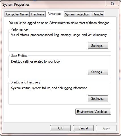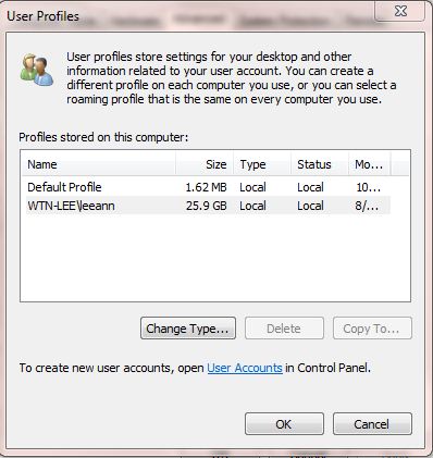 - Right click on “My Computer” and select “Properties.” Click on the “Advanced” tab and then on the “Settings” button under “User Profiles.”