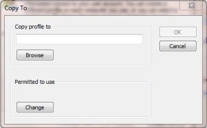 - In the “User Profiles” box, click on the profile for the user you configured as noted above and then click on the “Copy To…” button.