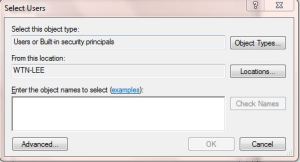 - After you click on “Add…” a dialog box appears where you can type in the username you want to add to the Administrators group. Note that the “From this location:” box at the top should show your domain name.